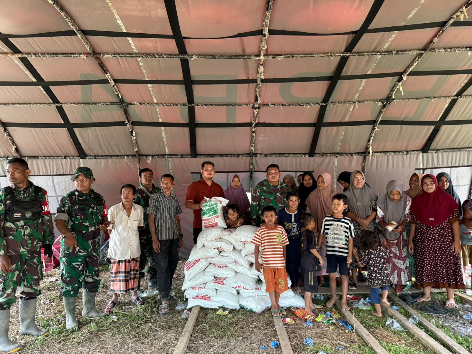 “Aryo Fazli, KK, SH, didampingi Danposramil Darul Hasanah Kodim 0108/Agara Peltu Dedi Cahyadi beserta Babinsa, menyerahkan langsung bantuan beras tersebut kepada warga yang terdampak banjir,” sebutnya.
