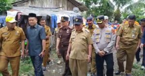 Tanggamus – Forkopimda Kabupaten Tanggamus melakukan peninjauan langsung ke lokasi paska banjir di Lingkungan Kapuran Kelurahan Pasar Madang, Dusun Kapuran, Kecamatan Kota Agung, Senin (8/12/2025), pasca jebolnya tanggul Kali Bego akibat curah hujan tinggi beberapa hari lalu.