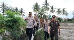 Kapolres Tanggamus Bersama Forkopimda Tinjau Lokasi Banjir Akibat Jebolnya Tanggul Kali Bego