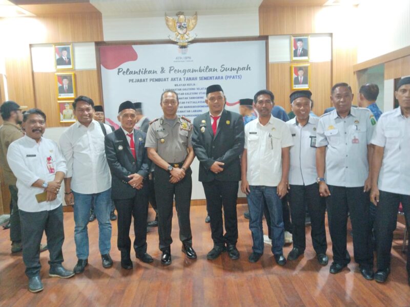 waspadaindonesia.com l Takalar – Kepala Kantor Badan Pertanahan Nasional (BPN) Kabupaten Takalar resmi melantik Camat Mangarabombang dan Camat Laikang sebagai Penjabat Pembuat Akta Tanah Sementara (PPATS) pada Rabu-17 Desember 2025- Bertempat di Kantor Badan pertanahan kab: Takalar Prosesi pelantikan berlangsung tertib, lancar, dan penuh khidmat.