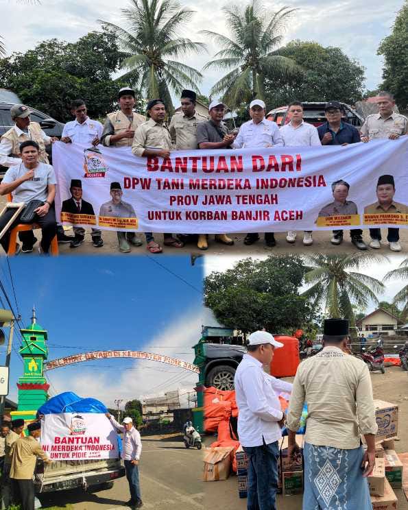 Waspadaindonesia.com | BANDA ACEH — Dewan Pimpinan Wilayah (DPW) Tani Merdeka Aceh bersama DPW Tani Merdeka Jawa Tengah kembali menunjukkan solidaritas antardaerah dengan menyalurkan bantuan kemanusiaan bagi masyarakat terdampak banjir di Aceh.