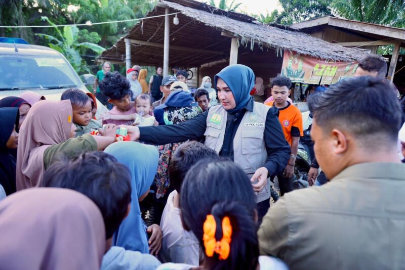 ACEH TIMUR – Ketua TP PKK Aceh Marlina Muzakir, bersama Staf Ahli TP PKK Aceh Mukarramah Fadhlullah, menembus pelosok untuk menyerahkan bantuan tanggap darurat ke Gampong Blang Seunong, Kecamatan Pantee Bidari, Jum’at (19/12/2025).