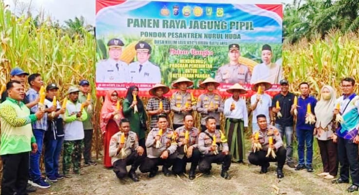 Kapolres Indragiri Hulu AKBP Fahrian Saleh Siregar, menyampaikan bahwa kegiatan Panen Raya Jagung Pipil di Pondok Pesantren Nurul Huda merupakan bentuk nyata dukungan Polri terhadap program pemerintah dalam menjaga dan memperkuat ketahanan pangan nasional.