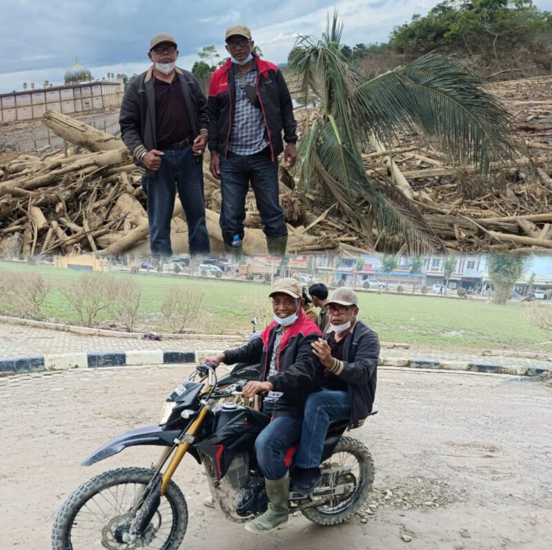 Dengan menggunakan motor trail, Tgk. Abdullah Hasbullah menembus medan berat dan akses yang sulit dijangkau kendaraan biasa.