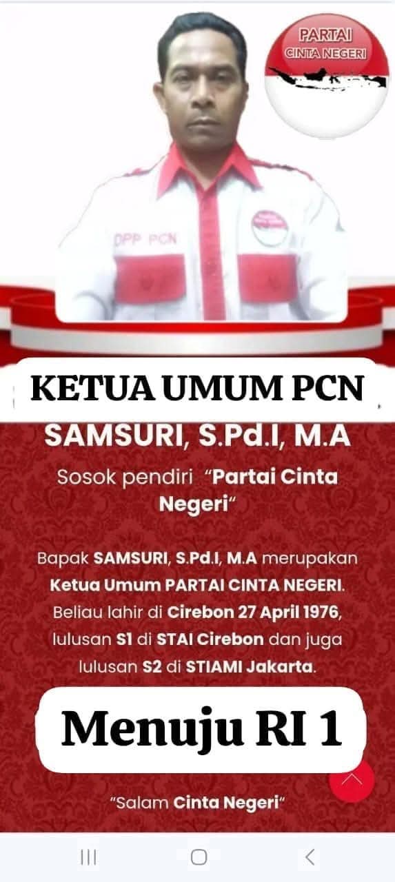 Jakarta –Peta politik nasional menuju Pemilihan Presiden 2029 mulai menunjukkan pergerakan signifikan. Pada Minggu, 27 April 2025, Partai Cinta Negeri (PCN) secara resmi mendeklarasikan pendiri sekaligus Ketua Umumnya, Samsuri, S.Pd.I., M.A., sebagai Calon Presiden Republik Indonesia Periode 2029–2034.