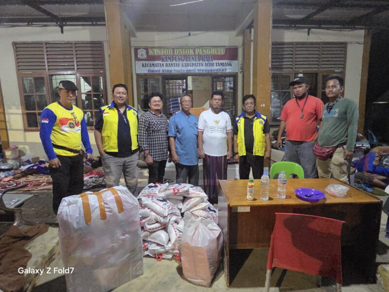 Waspadaindonesia.com | Kuala Simpang — Sebagai bentuk komitmen dan tanggung jawab moral terhadap masyarakat, Tim Tanggap Bencana Partai Perjuangan Aceh menyalurkan bantuan kemanusiaan kepada warga Desa Benua Raja, Kecamatan Rantau, Kabupaten Aceh Tamiang, pada Senin (23/12) pukul 23.00 WIB. Bantuan berupa beras, biskuit, dan pakaian dalam diterima langsung oleh Datok Desa Benua Raja.