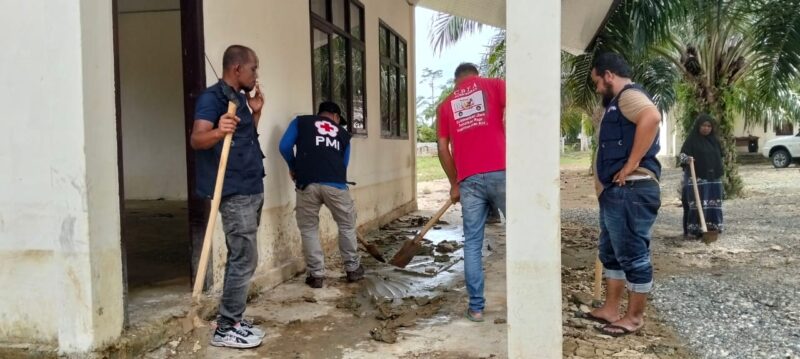 Palang Merah Indonesia ( PMI ) Kabupaten Nagan Raya Provinsi Aceh gelar bakti sosial membersihkan beberapa gedung sekolah yang terkenak banjir pada tanggal 27 Bulan November di wilayah Kecamatan Tadu Raya dan Tripa Makmur.