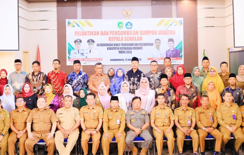 Selatpanjang-Riau, waspadaindonesia.com – Bupati Kepulauan Meranti, AKBP (Purn) H. Asmar, secara resmi melantik dan mengambil sumpah jabatan Kepala Sekolah definitif di seluruh kecamatan se-Kabupaten Kepulauan Meranti. Kegiatan tersebut berlangsung di Aula Gedung Kuning, Selasa (13/01/2026).Dalam sambutannya, Bupati Asmar menyampaikan ucapan selamat kepada para Kepala Sekolah yang baru dilantik.