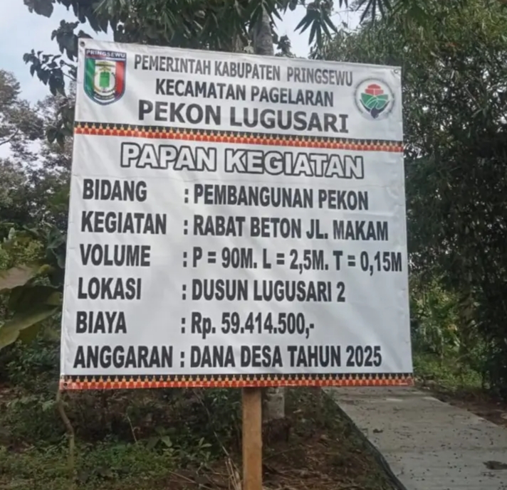Pringsewu – Pemerintah pekon Lugu sari, Kecamatan Pagelaran memanfaatkan Dana Desa tahap 1 tahun 2025 untuk pembangunan infrastruktur guna meningkatkan aksesibilitas warga. Pembangunan rabat beton menjadi prioritas dalam upaya ini dengan tujuan memperbaiki jalan yang sebelumnya tidak memadai.