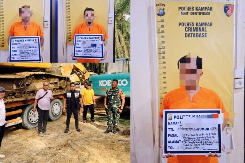 “Saat tiba di lokasi, kami mendapati dua unit alat berat excavator sedang beroperasi. Kami kemudian mengamankan operator alat berat dan pengawas lapangan yang melakukan aktivitas penambangan ilegal tersebut,” ujar Kanit III Tipidter Polres Kampar, IPTU Hermoliza,