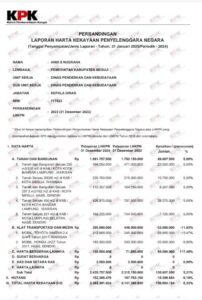 Temuan paling mencolok terlihat pada pos “Harta Bergerak Lainnya”, yang nilainya melonjak drastis sebesar 117,48% atau Rp 84 juta dalam satu tahun, dari Rp 71,5 juta menjadi Rp 155,5 juta. Kenaikan persentase yang sangat tinggi ini dinilai tidak wajar dan memerlukan penjelasan detail tentang jenis dan asal-usul harta tersebut.