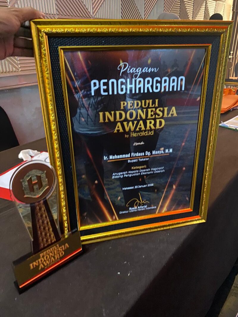 Dengan komitmen tersebut, Bupati Takalar yang akrab disapa *Daeng Manye dinobatkan sebagai Kepala Daerah Inspiratif Bidang Ekonomi Daerah pada ajang Herald.ID Award 2025 Outlook* Ekonomi yang berlangsung di Hotel Claro Makassar. Jum’at 23 Januari 2026.