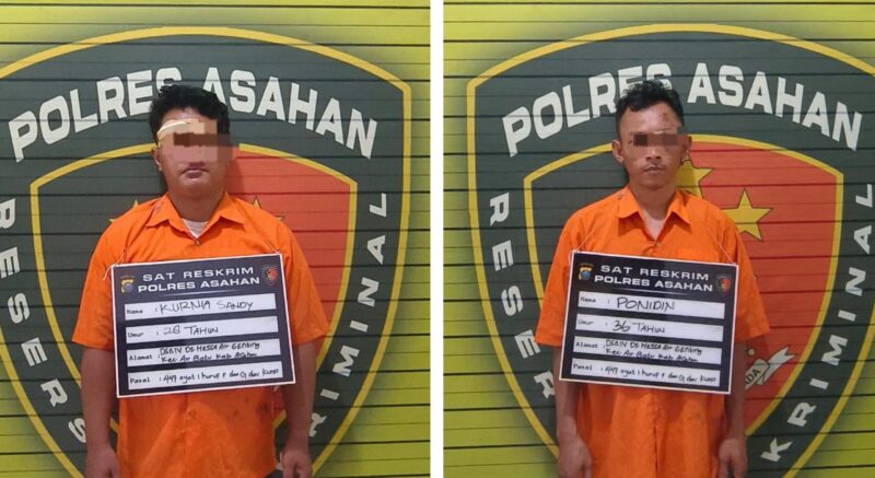 Dua pelaku yang diamankan masing-masing berinisial K.S. (28) dan P. (36). Sementara satu pelaku lainnya berinisial T. (26) masih dalam pengejaran petugas, ujar Kapolres Asahan.