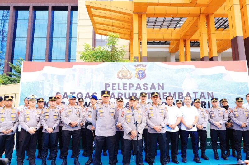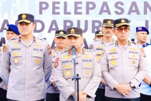 Pekanbaru, waspadaindonesia.com – Sebanyak 250 personel gabungan Polda Riau dan polres jajaran diturunkan ke lapangan untuk mengeksekusi pembangunan 26 jembatan di Bumi Lancang Kuning. Personel Satgas Jembatan Merah Putih Presisi ini dilepas langsung oleh Kapolda Riau Irjen Pol Herry Heryawan. Pelepasan personel dilaksanakan di halaman Mapolda Riau, Kota Pekanbaru, yang dihadiri Wakapolda Riau Brigjen Hengki Haryadi dan seluruh pejabat utama (PJU) Polda Riau. Rabu (28/01/2026).