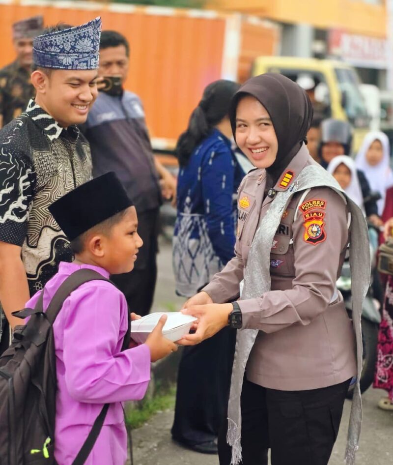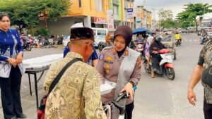 Bangkinang-Riau, waspadaindonesia.com – Satlantas Polres Kampar melaksanakan kegiatan Jumat Berkah dengan membagikan makanan kepada masyarakat yang kurang mampu dan pengguna jalan yang tertib aturan lalu lintas, Jumat (30/01/2026).Kegiatan ini dipimpin langsung oleh Kasat Lantas AKP Wulan Afdhalia Ramdhani, S.Trk., S.I.K., bersama Kanit Regident Iptu Sulthon Sekar Jagat, S.Trk., KBO Ipda Ferry Irawan, Kanit Turjagwali Ipda Brilian Sendi Putra Darpita, S.Trk., Kanit Gakkum Ipda Eka Putera., S.E., M.M., dan 6 personel Satlantas Polres Kampar.