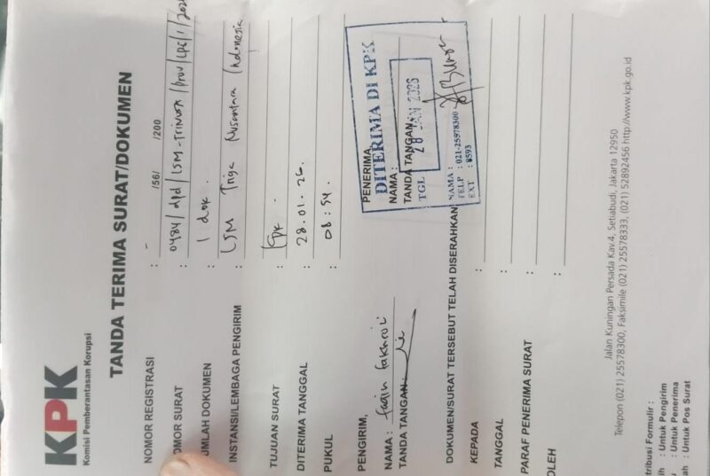 LAMPUNG – Lembaga Swadaya Masyarakat (LSM) TRINUSA Dewan Pimpinan Daerah (DPD) Provinsi Lampung resmi melayangkan surat pemberitahuan aksi unjuk rasa dan laporan dugaan korupsi kepada Komisi Pemberantasan Korupsi (KPK) RI. Laporan ini menyoroti dua proyek irigasi bernilai total hampir Rp 85 miliar yang dikelola oleh Satuan Kerja Pelaksana Jalan dan Pengairan (SNVT PJPA) Balai Besar Wilayah Sungai (BBWS) Mesuji Sekampung dan dilaksanakan oleh PT. Brantas Abipraya (Persero) pada tahun 2025.