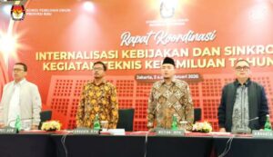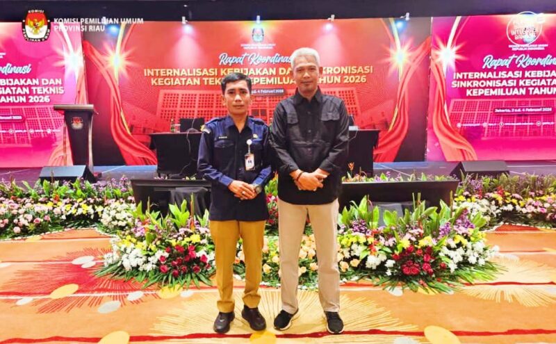 Jakarta,  waspadaindonesia.comAnggota KPU Riau, Nahrawi, dan Kabag Teknis dan Hukum, Nirson, Senin (2/02/2026), mengikuti Rapat Koordinasi Internalisasi Kebijakan dan Sinkronisasi Kegiatan Teknis Kepemiluan Tahun 2026 di Jakarta. Rapat ini bertujuan untuk membahas kebijakan dan strategi menuju Pemilu 2029. Rabu (4/02/2026).Ketua KPU, Mochammad Afifuddin, didampingi Anggota KPU Idham Holik dan Parsadaan Harahap, menyampaikan bahwa KPU perlu mendengarkan masukan dari KPU provinsi, terutama yang memiliki keunikan di daerahnya masing-masing. “Penting bagi kami untuk mendengarkan masukan dari KPU provinsi, sehingga kami dapat merancang kebijakan nasional yang tepat dan efektif,” kata Afif.