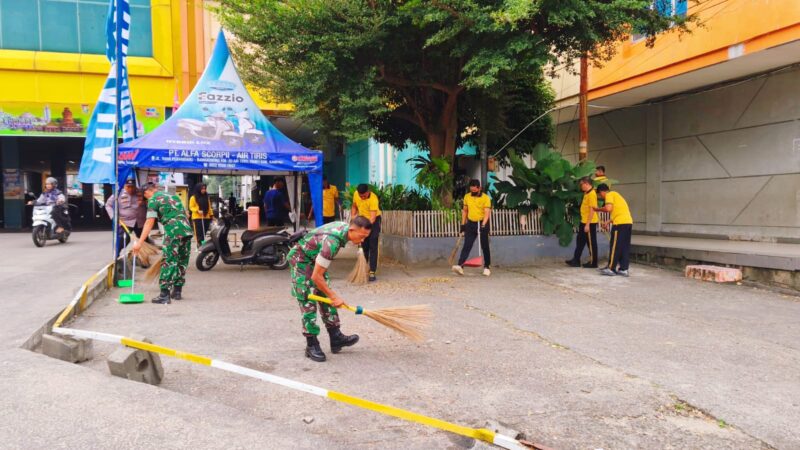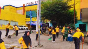 Selanjutnya, dengan semangat gotong royong, seluruh peserta kegiatan membersihkan area Plaza Ramayana Bangkinang, mulai dari menyapu, mengumpulkan sampah, hingga menata lingkungan sekitar.
