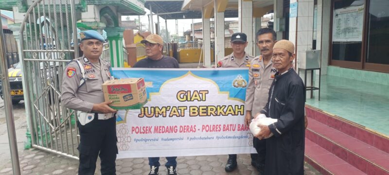 BATU BARA — Dalam rangka meningkatkan kepedulian sosial serta mempererat hubungan dengan masyarakat, Polsek Medang Deras melaksanakan kegiatan Jumat Berkah dengan menyalurkan bantuan paket sembako kepada Marbot Mesjid di Wilkum Polsek Medang Deras.
