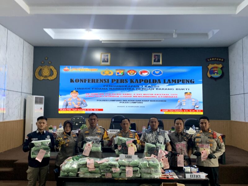 Bandar Lampung — Kepolisian Daerah Lampung melalui Direktorat Reserse Narkoba bersama Satresnarkoba Polres Lampung Selatan dan Polsek KSKP Bakauheni berhasil mengungkap jaringan peredaran narkotika lintas provinsi dengan barang bukti dalam jumlah besar.