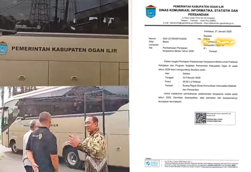 Ironisnya, di waktu yang hampir bersamaan, publik justru menyaksikan Kepala Diskominfo bersama Pj Sekda Ogan Ilir mengantar rombongan Persatuan Wartawan Indonesia (PWI) Ogan Ilir ke Banten untuk menghadiri Hari Pers Nasional (HPN).