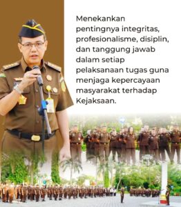 “Seluruh pegawai agar senantiasa menjunjung tinggi nilai-nilai profesionalisme, disiplin, dan tanggung jawab sebagai aparatur penegak hukum, sehingga kepercayaan masyarakat terhadap institusi Kejaksaan dapat terus terjaga,” kata Asbin.
