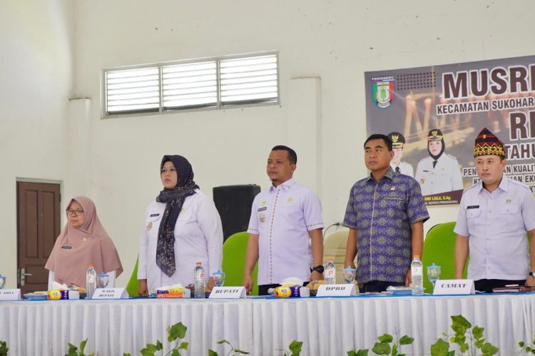 PRINGSEWU – Bupati Pringsewu Riyanto Pamungkas dan Wakil Bupati Pringsewu Umi Laila menghadiri Musyawarah Rencana Pembangunan (Musrenbang) Kecamatan Sukoharjo dalam rangka penyusunan Rencana Kerja Pemerintah Daerah (RKPD) Kabupaten Pringsewu Tahun 2027. Kegiatan ini dihadiri jajaran pemerintah daerah, kecamatan dan pekon, uspika serta anggota DPRD daerah pemilihan setempat.