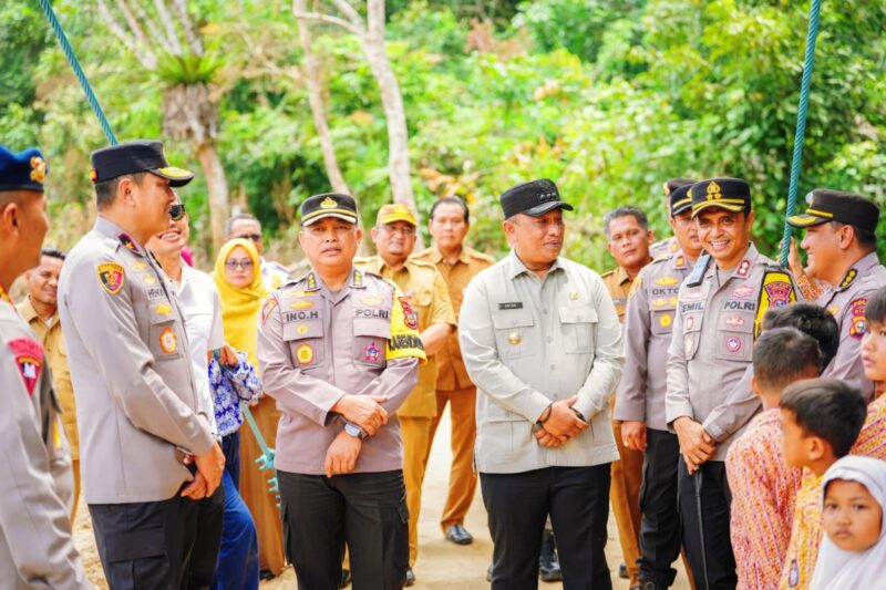 Dalam peninjauan tersebut, Wakapolda Riau didampingi langsung oleh Bupati Rokan Hulu meninjau progres pembangunan jembatan yang diharapkan dapat segera dimanfaatkan oleh masyarakat sebagai sarana transportasi yang aman dan layak, terutama bagi pelajar dan warga yang beraktivitas sehari-hari.