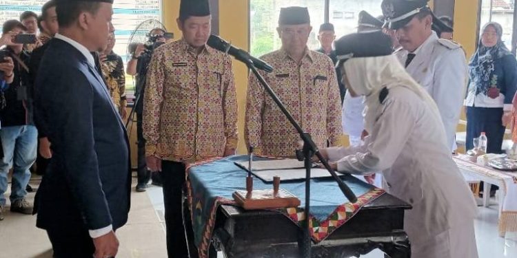 PRINGSEWU – Lima Kepala Pekon (Kapekon) Hasil Pemilihan Kepala Pekon Antarwaktu (PAW) dan tiga Penjabat Kepala Pekon (Pj.Kapekon) Persiapan di Kabupaten Pringsewu, dilantik dan diambil sumpah oleh Bupati Pringsewu Riyanto Pamungkas.