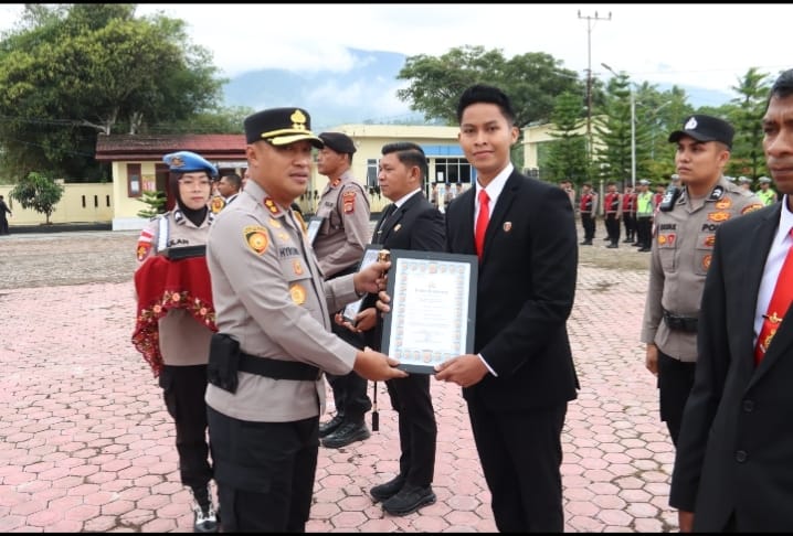 Blangkejeren, 16 Februari 2026 |  Kapolres Polres Gayo Lues AKBP Hyrowo, S.I.K., memimpin langsung upacara penyerahan penghargaan kepada personel Polres Gayo Lues yang dinilai berdedikasi tinggi dalam penanganan bencana hidrometeorologi di wilayah Kabupaten Gayo Lues. Kegiatan tersebut berlangsung pada Senin (16/2) sekira pukul 09.00 WIB di Lapangan Apel Polres Gayo Lues dan berakhir pukul 10.00 WIB dalam keadaan aman dan tertib.