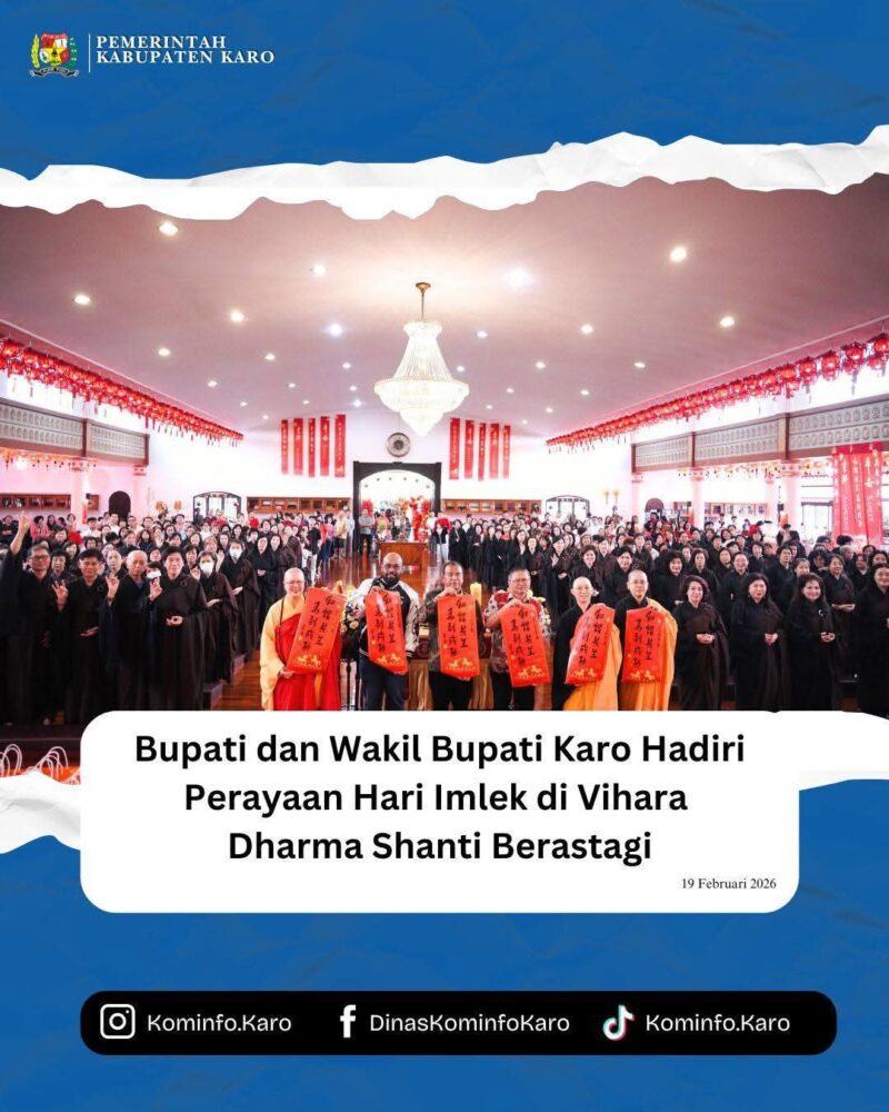 Bertempat di Vihara Dharma Shanti Berastagi. Kamis, (19/02/26). Bupati Karo, Brigjen Pol (Purn) Dr. dr. Antonius Ginting, Sp.OG., M.Kes., dan Wakil Bupati Karo, Komando Tarigan, S.P., menghadiri perayaan hari Imlek
