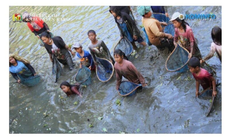 Bupati Karo, Brigjen Pol (Purn) Dr. dr. Antonius Ginting, Sp.OG., M.Kes, didampingi Wakil Bupati Karo, Komando Tarigan, SP., turut memeriahkan tradisi ndurung ikan yang dilaksanakan di Embung Talimbaru, Kecamatan Barusjahe, pada Jumat (20/2/26).