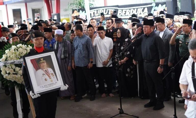 Palembang – Suasana haru menyelimuti Rumah Duka di Jalan Merdeka Palembang, Kamis (26/2/2026), saat Gubernur Sumatera Selatan, H. Herman Deru, memimpin upacara pelepasan jenazah Gubernur Sumsel periode 2008–2018, Alex Noerdin.