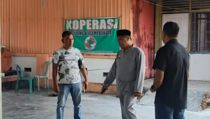 BATU BARA — Kepala Dinas Penanaman Modal Pelayanan Terpadu Satu Pintu (DPMPTSP) Kabupaten Batu Bara, Murdi Simangunsong didampingi Kabid Pengawas Perijinan, Bambang Kurniawan meninjau lahan dan bangunan KUD Maju Bersama yang saat ini di kuasai Br Manurung alias Mak Boy.