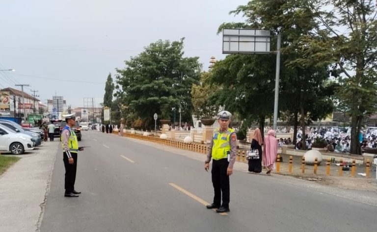Di setiap titik, aparat kepolisian terlihat berjaga dan berpatroli. Selain memastikan keamanan, petugas juga membantu mengatur arus lalu lintas serta parkir kendaraan agar tetap tertib. Kehadiran polisi ini pun mendapat respons positif dari masyarakat karena dinilai mampu memberikan rasa tenang selama pelaksanaan ibadah berlangsung.
