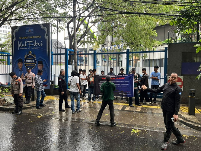 Perkumpulan Aktivis Maluku Utara (PA-Malut) Jakarta menggelar aksi massa di depan Kantor DPP Partai Demokrat, Jakarta, Rabu (8/4/2026). Mereka mendesak pengurus pusat partai untuk memberikan perlindungan terhadap kader di daerah yang dinilai menjadi korban fragmentasi informasi.