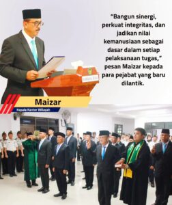 “Bangun sinergi, perkuat integritas, dan jadikan nilai kemanusiaan sebagai dasar dalam setiap pelaksanaan tugas,” pesan Maizar kepada para pejabat yang baru dilantik.