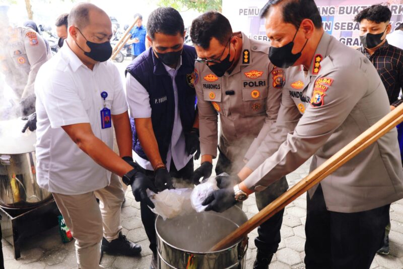 Pemusnahan ini merupakan hasil pengungkapan tujuh kasus narkotika dengan total 10 tersangka yang berhasil diamankan jajaran Ditresnarkoba Polda Riau.