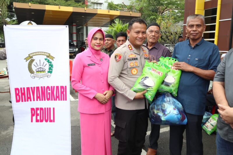 Penyaluran bantuan diserahkan langsung oleh Kapolres Aceh Tenggara, AKBP Yulhendri, S.I.K., didampingi Ketua Cabang Bhayangkari Aceh Tenggara, Ny. Ilma Yulhendri, serta dihadiri oleh para Pejabat Utama (PJU) Polres Aceh Tenggara.