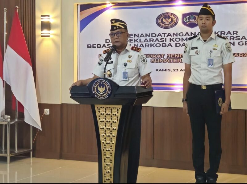 MEDAN, –  Kantor Wilayah Direktorat Jenderal Pemasyarakatan Sumatera Utara (Kanwil Ditjenpas Sumut) melaksanakan penandatanganan Ikrar dan Komitmen Bersama Bebas dari Narkoba dan Telepon Genggam, Kamis (23/4/2026).