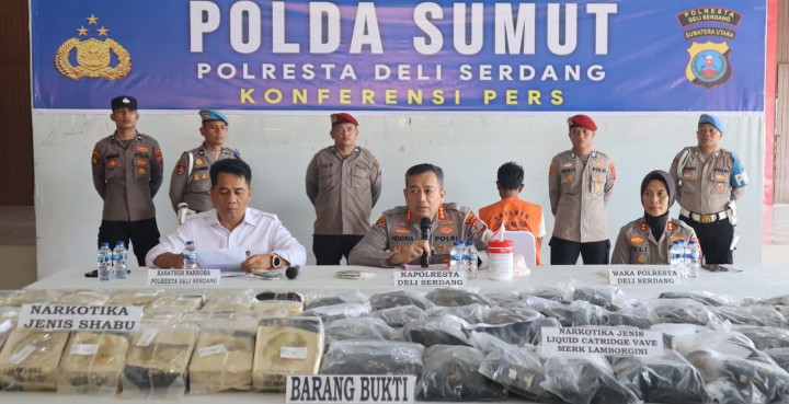 Kapolresta Deli Serdang Kombes Pol Hendria Lesmana, didampingi Kasat Narkoba Kompol Dr. Fery Kusnadi, dalam konferensi pers menjelaskan, pengungkapan kasus ini berawal dari informasi masyarakat terkait adanya penyelundupan narkoba dari Malaysia melalui perairan Tanjung Ledong, Kota Tanjungbalai.