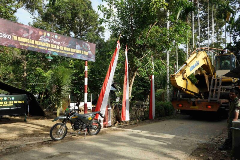 Abdya – Satuan Tugas (Satgas) TNI Manunggal Membangun Desa (TMMD) ke-128 Kodim 0110/Abdya kembali menurunkan satu unit alat berat jenis excavator untuk mempercepat pembukaan badan jalan di kawasan pegunungan, Senin (27/4/2026).