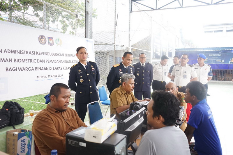 MEDAN | Dalam rangka memperingati Hari Bakti Pemasyarakatan (HBP) ke-62 Tahun 2026, Lembaga Pemasyarakatan (Lapas) Kelas I Medan menghadirkan pelayanan Administrasi Kependudukan bagi Warga Binaan Pemasyarakatan (WBP), Senin (27/4).