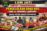LAMPUNG – Lembaga Swadaya Masyarakat Jati menuntut transparansi dan audit mendalam terhadap pengelolaan Dana Bantuan Operasional Sekolah (BOS) tingkat Sekolah Menengah Atas (SMA) se-Provinsi…