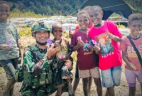 Intan Jaya – Papua Tengah.Waspada Indonesia | -Satgas Pamtas RI-PNG Mobile Yonif 113/JS TK Bilai menunjukkan kepedulian terhadap anak-anak di Kampung Bilai Distrik Homeyo…