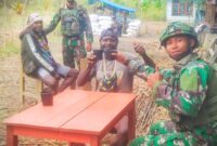 Intan Jaya — Dalam suasana yang masih kental dengan tantangan keterbatasan akses pelayanan publik di wilayah pedalaman Papua, personel Satgas Pamtas RI-PNG Mobile Yonif…