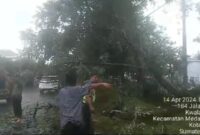 Medan | Personil Polsek Delitua gerak cepat evakuasi pohon tumbang di Jalan AH Nasution Depan Kantor Dinas Pertanian pada minggu 14 April 2024 sekitar…