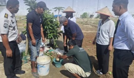 Dukung Ketahanan Pangan, Jajaran Giatja Lapas Narkotika Pematangsiantar Dan Peserta Magang Kemnaker Melaksanakan Pelatihan aplikasi Pupuk Organik Cair dari Sampah Sisa Sayur kepada WBP