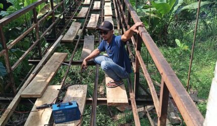 Kakon Banjar Agung Udik Bersama Warga Bergotong Royong Perbaiki Jembatan Gantung
