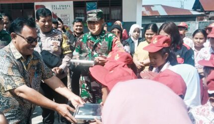 Polsek Simpang Empat Hadiri Launching Program Makan Gizi Gratis di Desa Cinta Rakyat